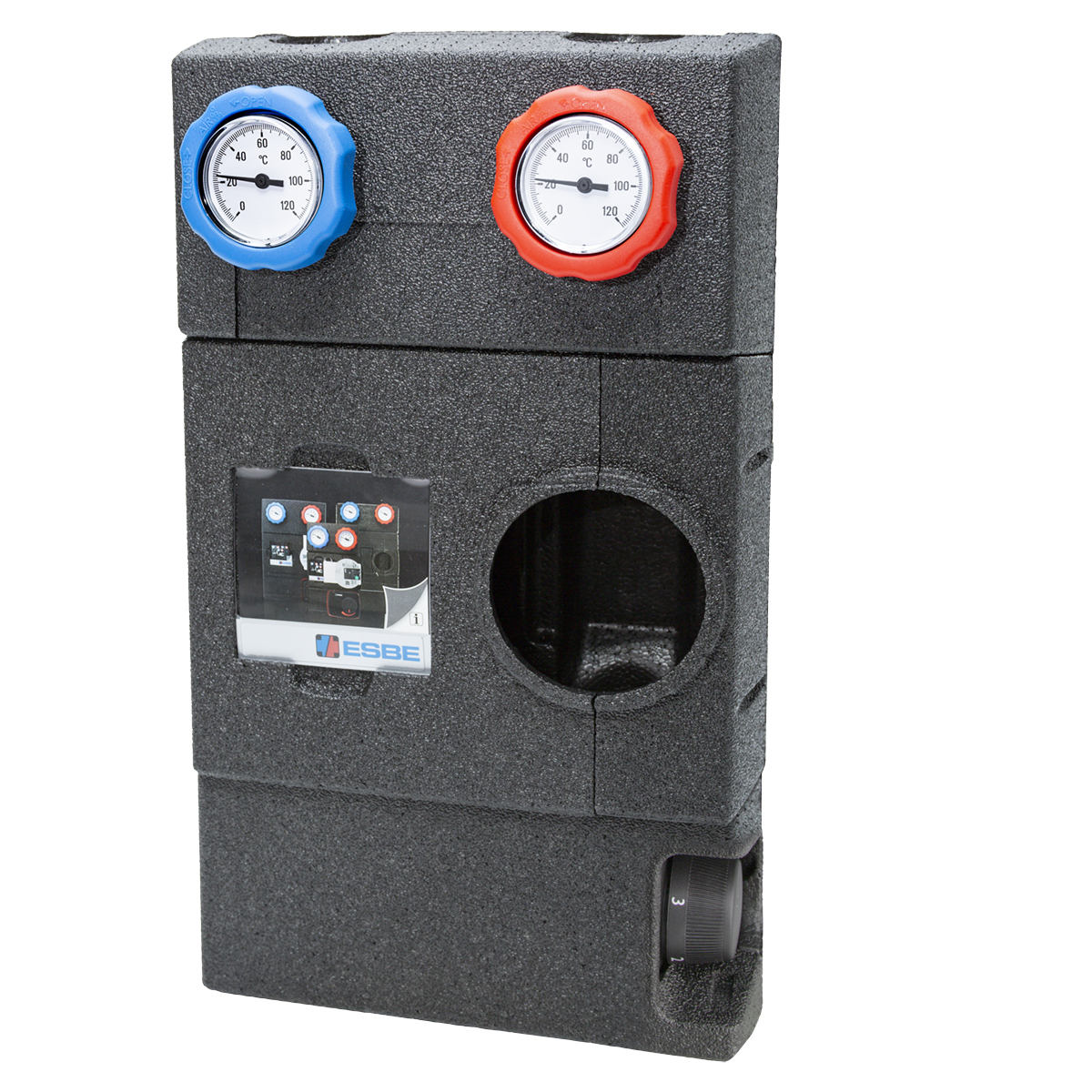 La ESBE serie GFF200 es una unidad de circulación de mezcla diseñada para circuitos de calefacción en los que se requiere un control constante de la temperatura. Equipada con dos válvulas de cierre con termómetros, válvula de retención y aislamiento térmico de clase alta.